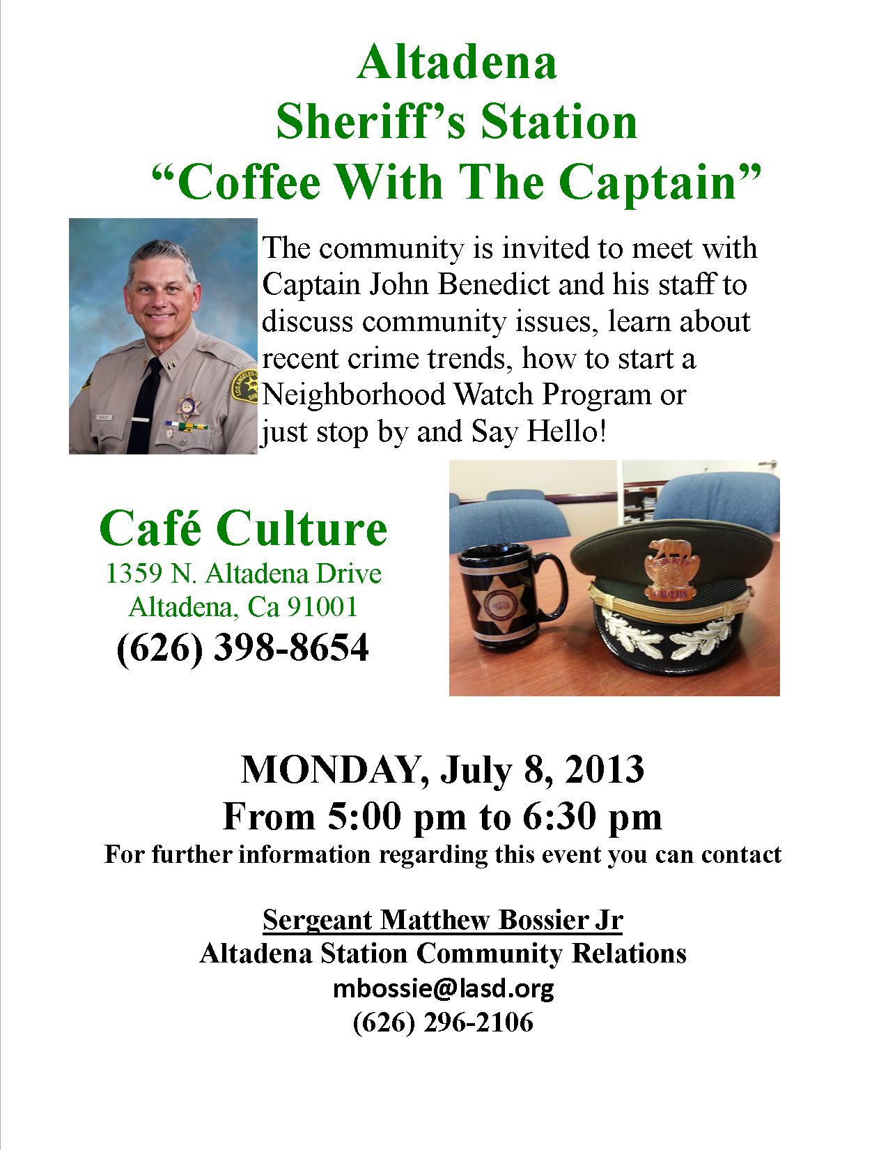 The Sheriff's Support Group is a non-profit 501 (c)(3) community service group whose purpose is to support the Altadena Sheriff's Station with services and materials not available through the budget, and to assist the community with those activities sanctioned by the commander.